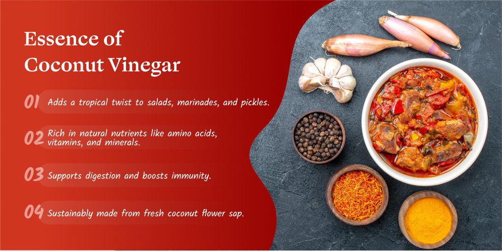 Harvested from lush and fertile coconut groves, this naturally sweet nectar forms the foundation of our vinegar with its tropical notes and subtle sweetness.